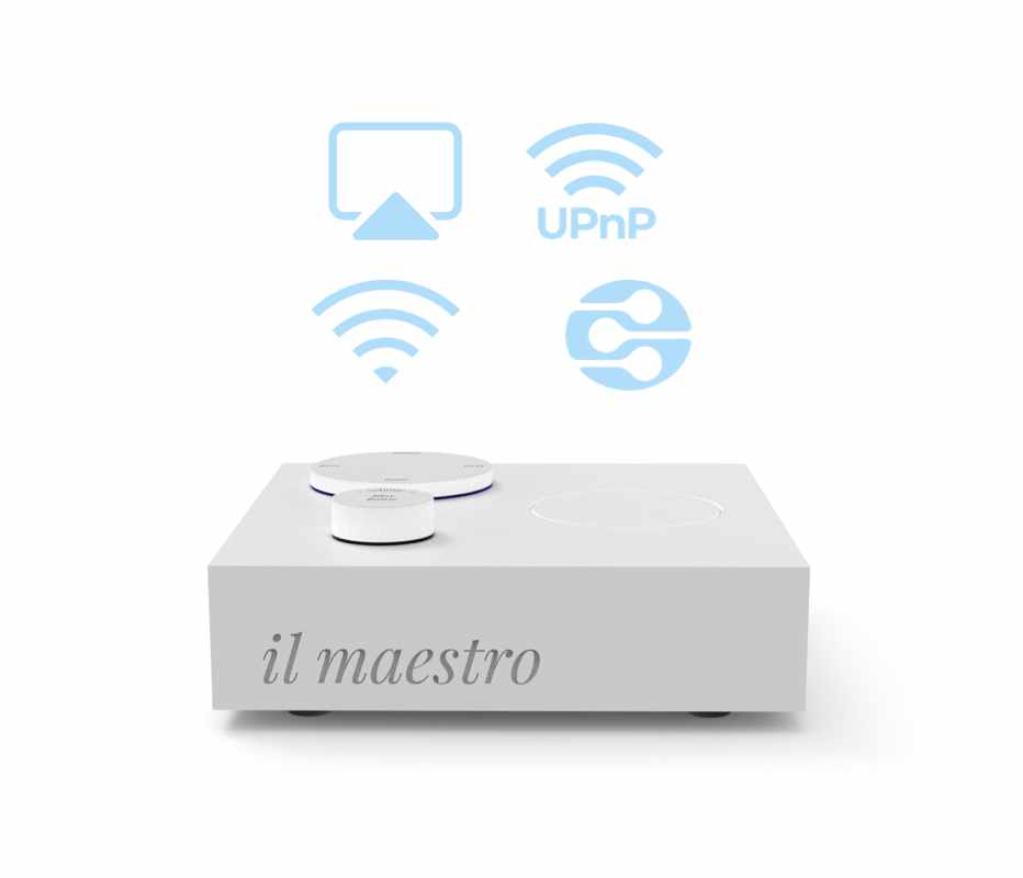 La connessione di rete, via cavo o wireless con le piu’ comuni tecnologie radio ed il supporto dei protocolli Airplay (per una connessione diretta delle periferiche Apple), DLNA e UPnP, permettono di ascoltare la propria musica in streaming dal proprio telefono, PC o NAS.