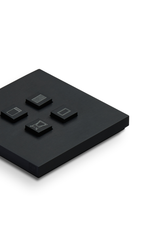 Le placche MakeUp si prestano a una amplissima varietà di combinazioni tecnico-estetiche. Materiali, trattamenti e finitura dei comandi, possono essere tono su tono o a contrasto. Incisioni laser o stampe con vernici UV permettono di caratterizzare la funzione del comando o aggiungere decori.